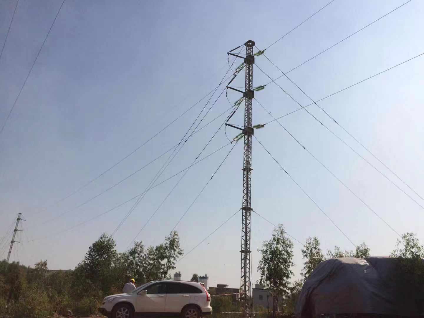 廣東和發(fā)接到施工任務(wù)后,馬上進(jìn)行現(xiàn)場(chǎng)勘查,制定施工方案,開始有條不紊的施工送電準(zhǔn)備工作。在本次施工中,雖然地處平地,但地表桉樹較多,青苗賠償難度較大,交通條件不好,車輛不宜到達(dá),需用人力運(yùn)輸;廣東和發(fā)攻克難關(guān),做好現(xiàn)場(chǎng)技術(shù)、質(zhì)量、安全工作,充分運(yùn)用ERS應(yīng)急系統(tǒng)的優(yōu)勢(shì),在不需用建設(shè)臨時(shí)性鐵塔基礎(chǔ)和混凝土基礎(chǔ)的澆制工作優(yōu)點(diǎn)下,減少了多方面的施工環(huán)節(jié),有利地保證了施工的快捷性。隨著設(shè)備、材料、工器具進(jìn)場(chǎng)及施工準(zhǔn)備,桿塔組立,導(dǎo)地線放緊線工作的完成,110kV樟岐線#13—#15、#19—#20段臨時(shí)轉(zhuǎn)供電于11月4日成功送電,ERS應(yīng)急塔于11月7日完成臨時(shí)供電后順利退場(chǎng),保障了110kV長(zhǎng)岐站的供電,減少了吳川的用電緊張局面。
