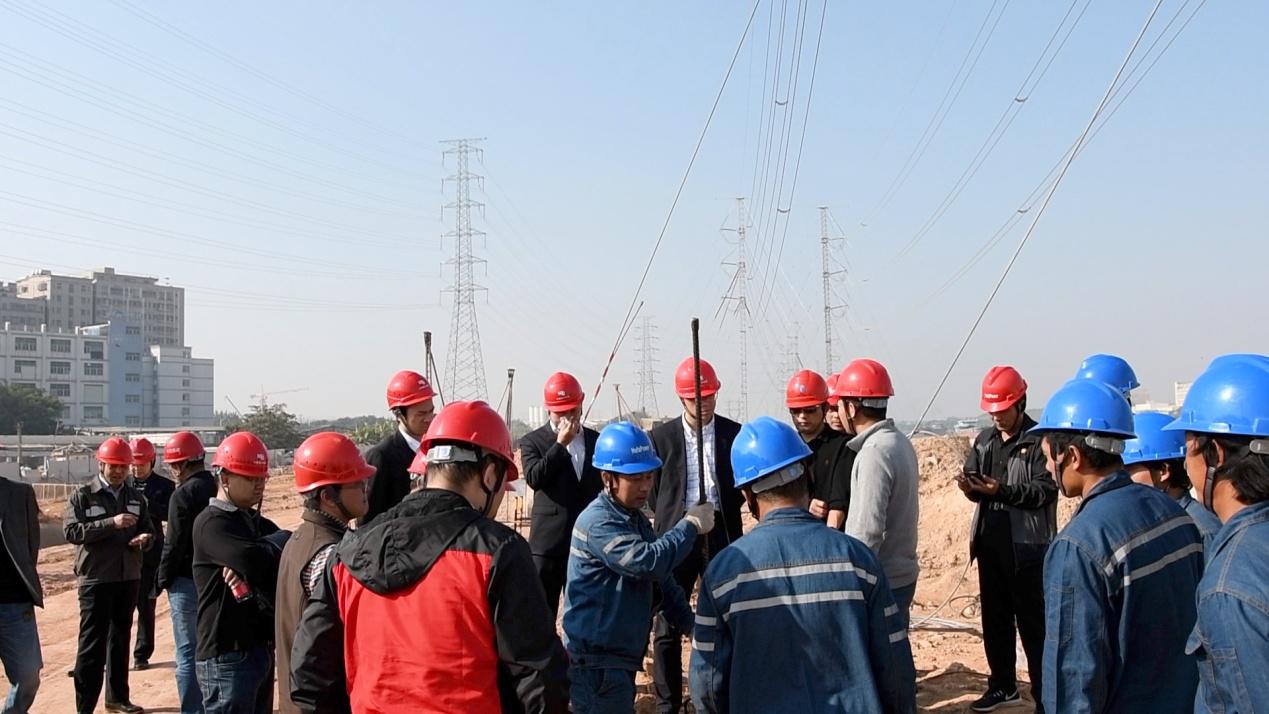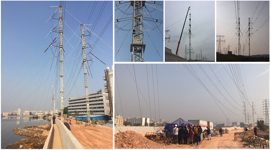 與會(huì)代表首先對(duì)ERS應(yīng)用的成功案例——深圳外環(huán)高速項(xiàng)目中的220KV象創(chuàng)乙線臨時(shí)線路、220KV奮琵乙線臨時(shí)線路進(jìn)行了實(shí)地考察。該項(xiàng)目位于沙井東寶河河邊,線路全長(zhǎng)1.857kM,由24基ERS轉(zhuǎn)角塔形成的雙回路臨時(shí)供電線路,同期進(jìn)行的有茅洲河整治工程、茅洲河堤岸加固工程、外環(huán)高速建設(shè)工程;面對(duì)復(fù)雜多變的情況,廣東和發(fā)輸變電安裝有限公司的專利技術(shù)電力線路應(yīng)急搶修系統(tǒng)(ERS)僅用了三天的時(shí)間就使得臨時(shí)線路全部通電運(yùn)行,臨時(shí)線路在線運(yùn)行37天,并于2017年12月30日成功完成臨時(shí)轉(zhuǎn)供電任務(wù)。